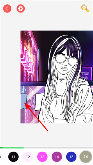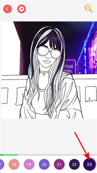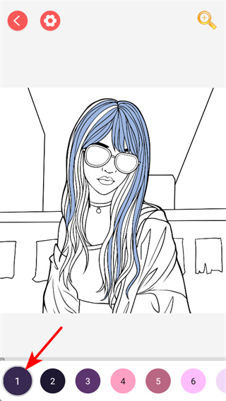 2、點擊對應(yīng)數(shù)字的顏色按鈕,顏色選擇是填色創(chuàng)作的核心步驟,選擇后可對繪圖中相同數(shù)字的區(qū)域進(jìn)行填色,逐步完成作品。