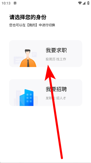 2、進(jìn)入選擇身份頁面,點(diǎn)擊選擇為我要求職。