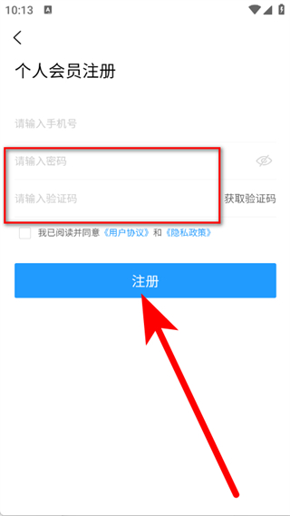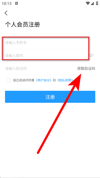 4、在個(gè)人會(huì)員注冊(cè)頁面,輸入手機(jī)號(hào),點(diǎn)擊獲取驗(yàn)證碼。