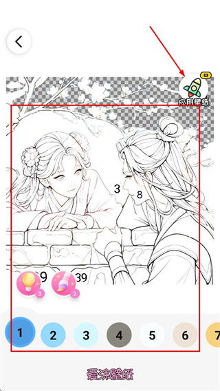 3、在涂色編輯頁(yè)面,完成涂色后還點(diǎn)擊應(yīng)用壁紙將其設(shè)置為壁紙。