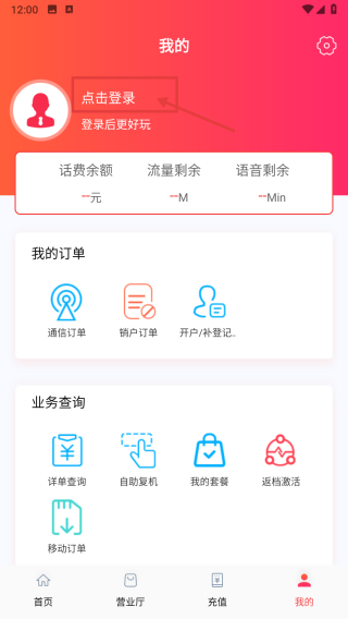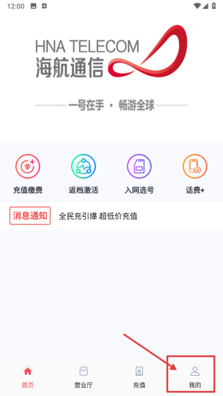 1、打開通信服務(wù)類APP,點(diǎn)擊底部我的選項(xiàng),進(jìn)入個(gè)人中心頁面。