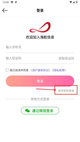 3、在登錄界面,點(diǎn)擊賬號(hào)密碼登錄選項(xiàng),切換至賬號(hào)密碼登錄頁面。