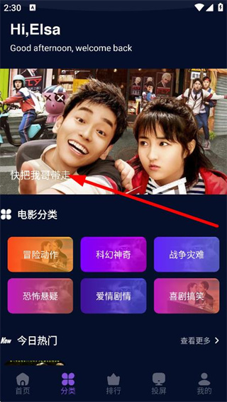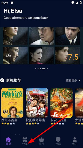1、在首頁中,點擊底部的分類,進入影視分類頁面。
