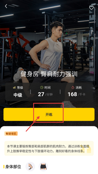 4、在課程詳情頁,點擊開練按鈕,開始該課程的訓練操作。