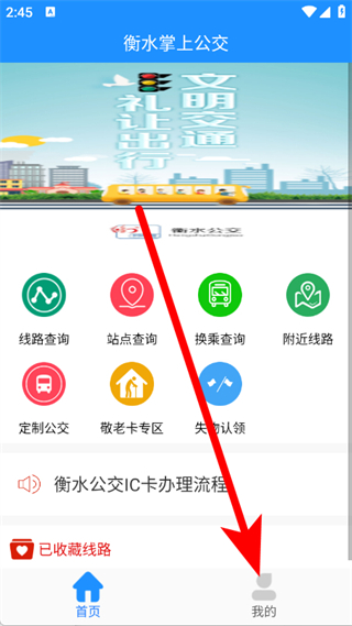 1、打開衡水掌上公交,在首頁點(diǎn)擊底部我的,進(jìn)入頁面。