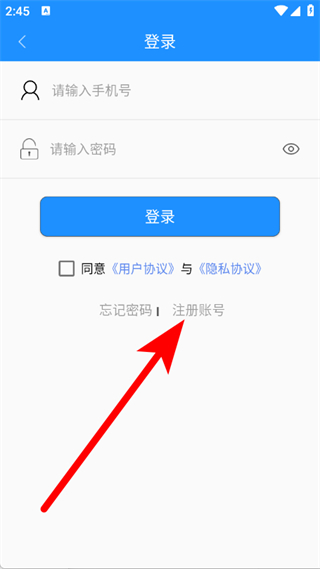 3、在登錄頁面,點(diǎn)擊注冊(cè)賬號(hào),進(jìn)入注冊(cè)頁面。