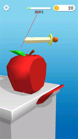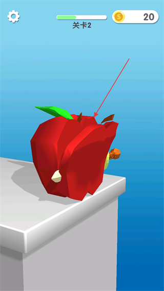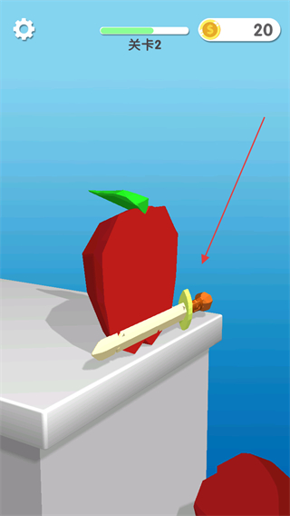 1、在關(guān)卡2中,操控刀具如劍向蘋果方向移動,準(zhǔn)備切割。