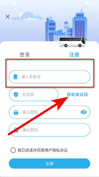 4、在注冊(cè)頁(yè)面,輸入手機(jī)號(hào)后,點(diǎn)擊獲取驗(yàn)證碼。