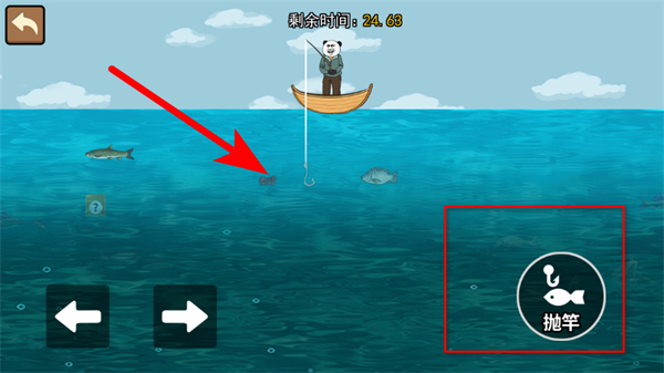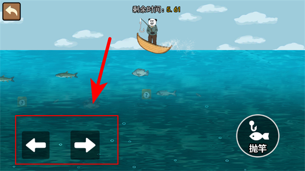 3、在釣魚界面,通過左右方向鍵移動(dòng)小船,尋找魚群位置。
