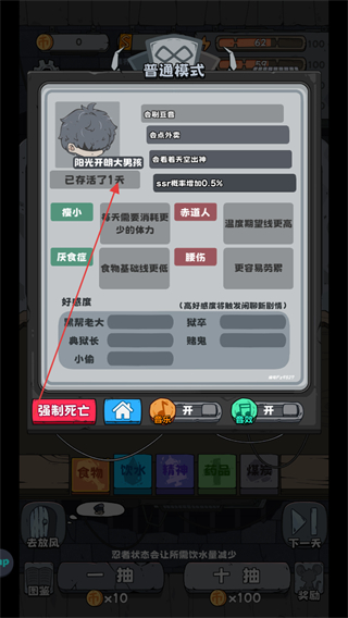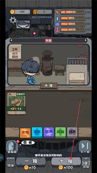 4、在監(jiān)獄內(nèi)除了通過(guò)交易獲取物資外,還可以通過(guò)花費(fèi)金幣進(jìn)行抽獎(jiǎng)獲得物資卡牌。