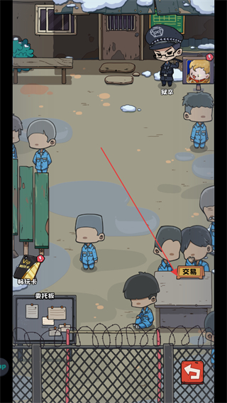 2、點(diǎn)擊監(jiān)獄內(nèi)左下角的放風(fēng)按鈕進(jìn)入天臺(tái)放風(fēng)區(qū)域,可以點(diǎn)擊交易進(jìn)行物資的交換。