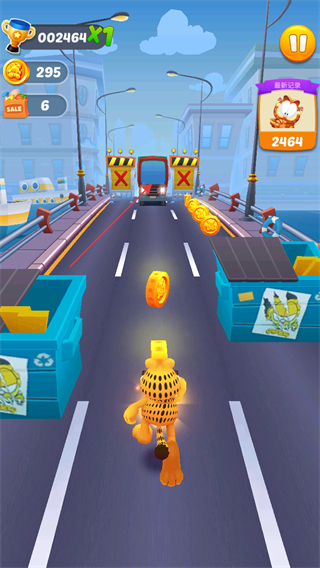 除加菲貓外,還有多個不同角色可選,每個角色都具備獨特能力,如加速沖刺、磁鐵吸金幣等,合理運用角色能力能應對不同路況,提升跑酷效率與分數(shù)獲取。