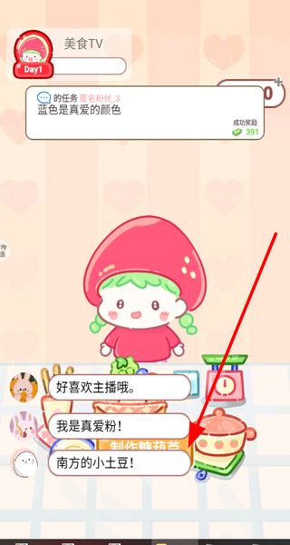 1、玩家進(jìn)入游戲,開始制作糖葫蘆,根據(jù)任務(wù)要求準(zhǔn)備制作,在美食直播的場(chǎng)景中開啟糖葫蘆制作流程。