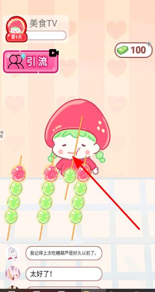 4、開始吃播吃糖葫蘆,展示制作好的糖葫蘆,與觀眾互動(dòng),完成吃播任務(wù),獲取獎(jiǎng)勵(lì),提升游戲體驗(yàn)。