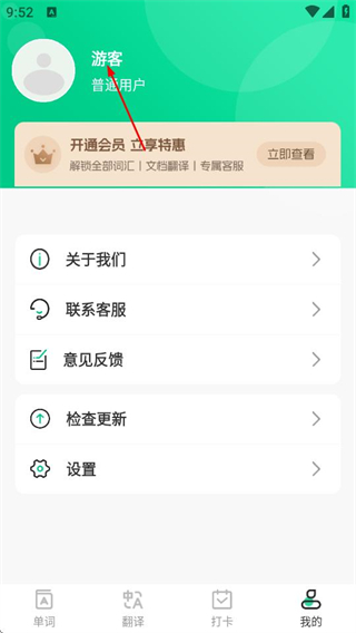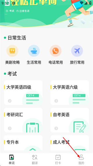 1、在軟件單詞頁面,點(diǎn)擊右下角我的選項(xiàng),進(jìn)入個人頁面。