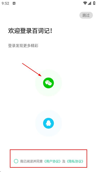 3、在登錄頁面,勾選協(xié)議后選擇微信登錄,可完成微信登錄操作。