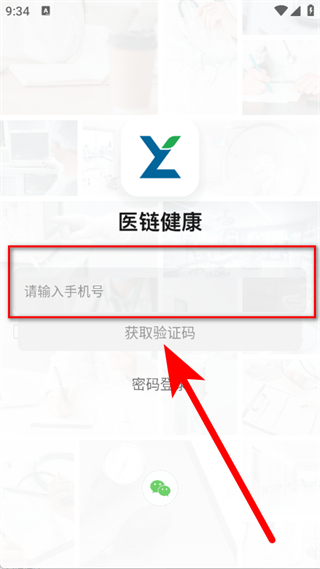 3、在登錄頁面,輸入手機號后,點擊獲取驗證碼。