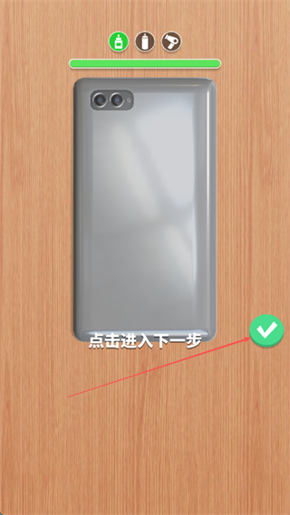1、使用工具清潔手機(jī)殼表面,完成后點(diǎn)擊綠色對勾進(jìn)入下一步。