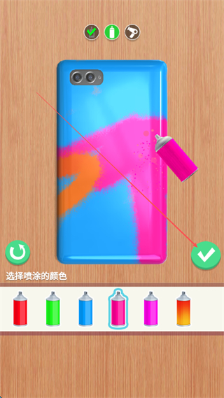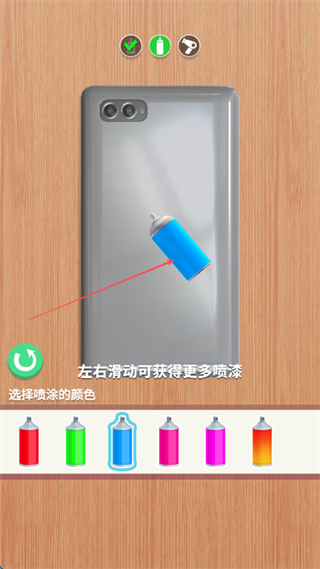 2、選擇噴漆顏色如藍(lán)色,左右滑動(dòng)獲取更多噴漆,噴涂手機(jī)殼。