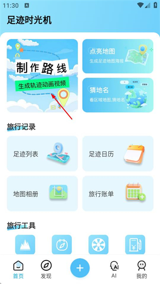 1、在足跡地圖首頁點擊制作路線,進入我的路線界面。