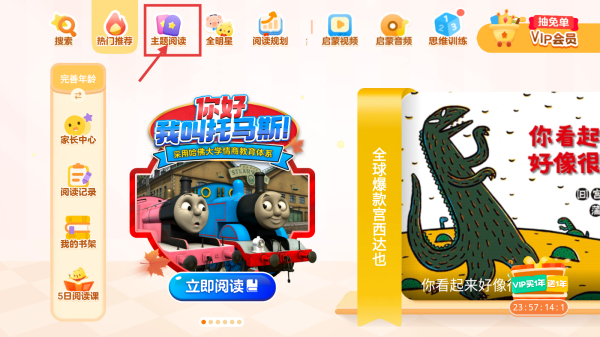 1、打開兒童閱讀類APP,點擊主題閱讀分類標簽,進入主題閱讀頁面。