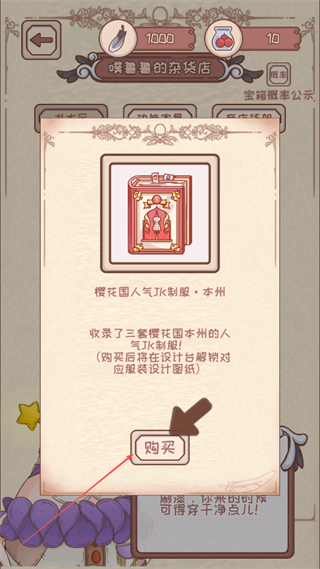 1、在雜貨店購買設(shè)計圖如櫻花國人氣制服·本州,獲取制作配方。
