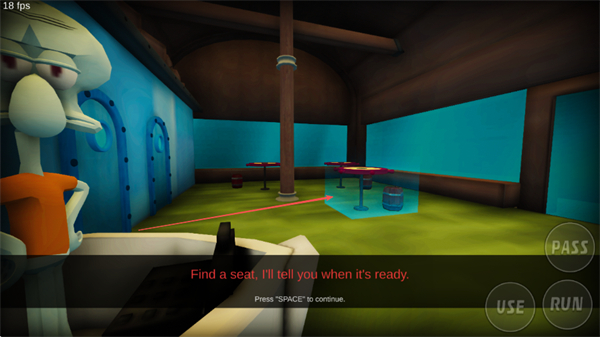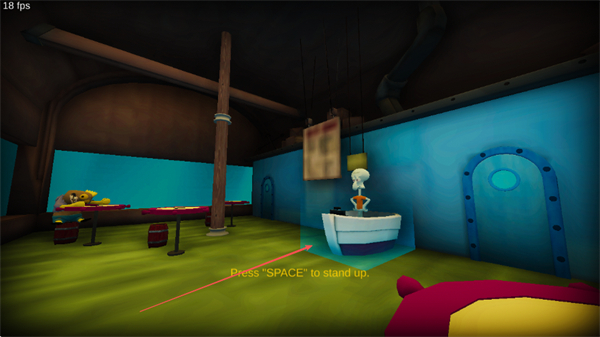 2、完成互動(dòng)后,按SPACE鍵起身,繼續(xù)探索蟹堡王的不同區(qū)域。