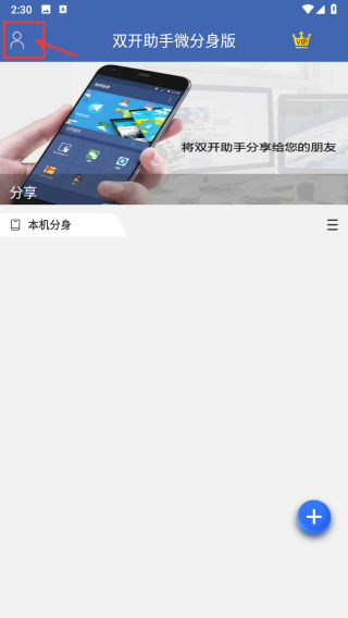 1、打開應用雙開類APP,點擊左上角頭像,進入個人中心頁面。