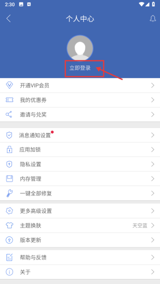 2、在個人中心頁面,點擊立即登錄選項,進入輸入賬號頁面。