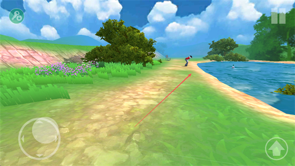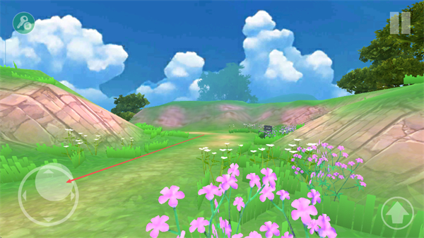 1、通過左側(cè)虛擬搖桿控制角色在草地、山坡等場景中移動,探索不同區(qū)域。
