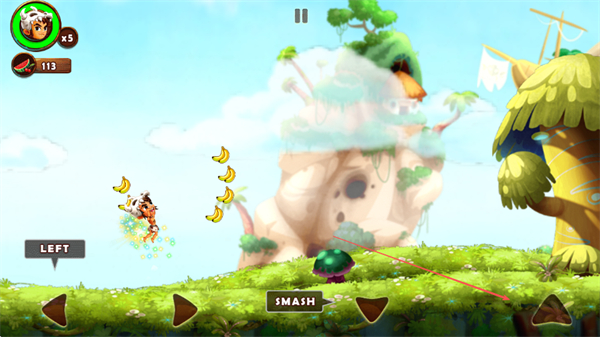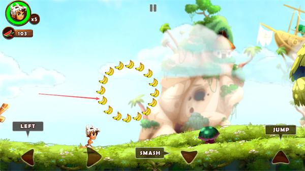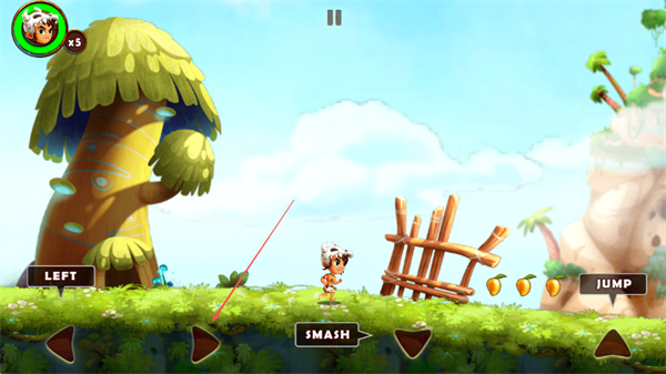 1、使用左下角LEFT方向鍵控制角色向左移動,右側(cè)JUMP鍵讓角色跳躍,SMASH鍵可讓角色向下沖擊。