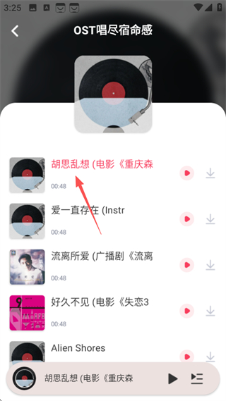 2、在歌曲列表頁面,選擇要播放的歌曲,進(jìn)入播放詳情頁面。