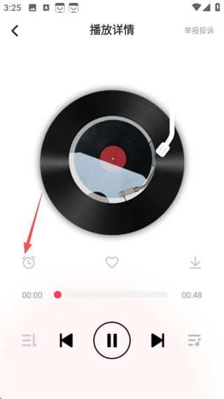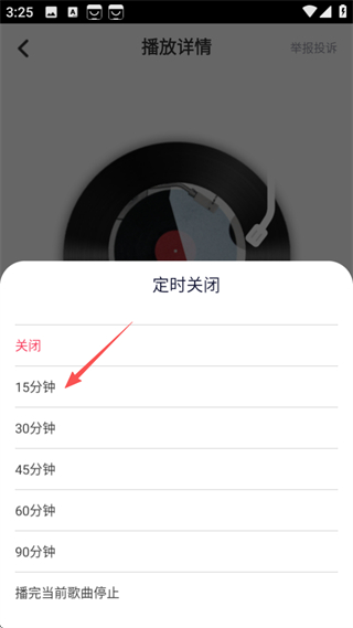 3、在播放詳情頁面,點(diǎn)擊定時(shí)圖標(biāo),彈出定時(shí)關(guān)閉選項(xiàng)菜單。