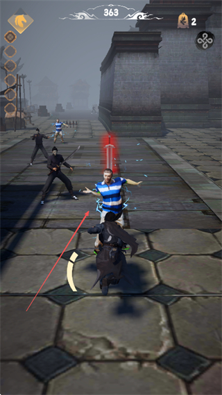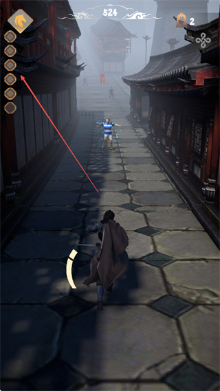 2、遇到敵人時(shí),按箭頭提示靠近并攻擊,擊敗敵人獲取分?jǐn)?shù),繼續(xù)跑酷。