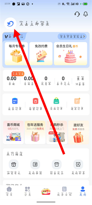 1、打開輕喜到家,點(diǎn)擊底部導(dǎo)航欄我的,進(jìn)入個人中心頁面。
