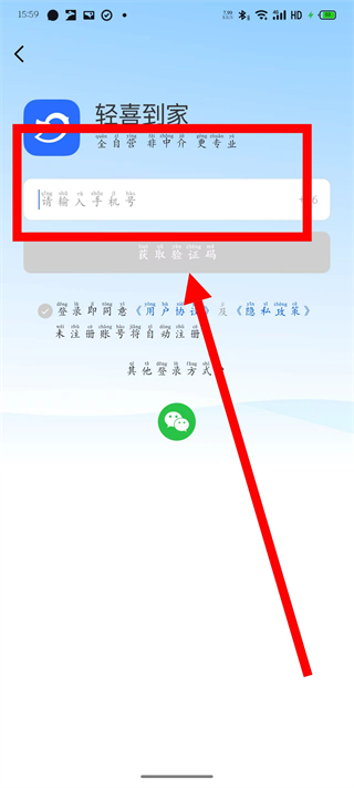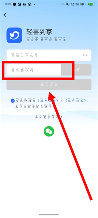 3、在登錄頁面,輸入手機(jī)號碼,點(diǎn)擊獲取驗(yàn)證碼。