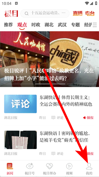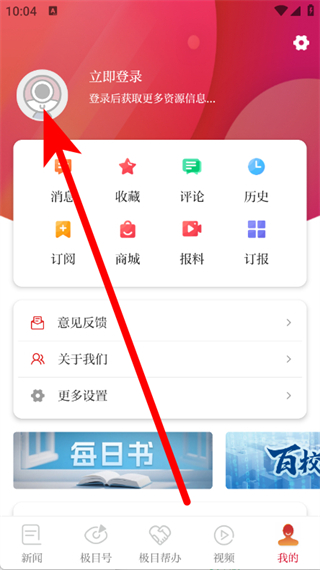 1、打開極目新聞客戶端,點擊底部導(dǎo)航欄我的,進(jìn)入個人中心頁面。