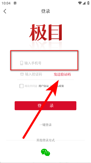 3、在登錄頁面,輸入手機(jī)號碼,點擊發(fā)送驗證碼。