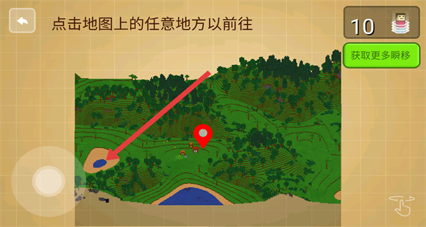 4、傳送完成后,可通過左側虛擬搖桿控制角色在新地點移動探索。