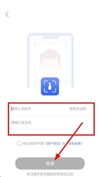 3、輸入手機號后獲取驗證碼,輸入驗證碼,點擊登錄,完成登錄操作。