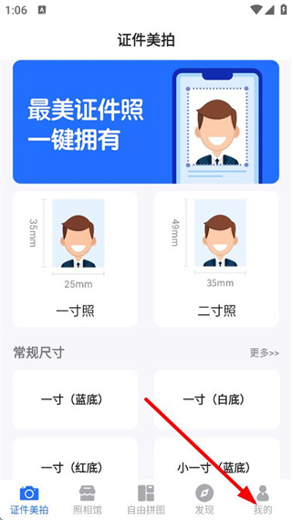 2、在證件美拍頁面,點擊底部我的,進入個人登錄頁面。