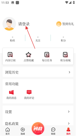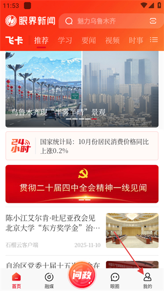 1、在眼界新聞首頁,點擊右下角我的選項,進入個人頁面。