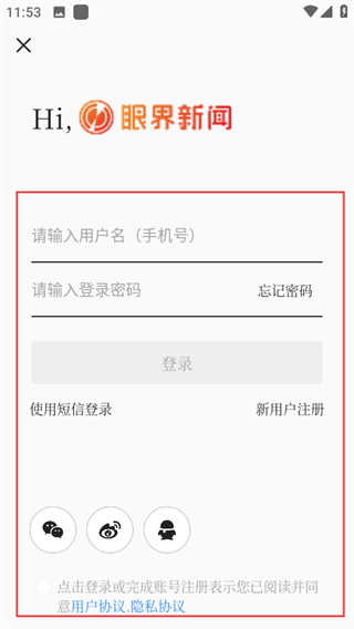 4、在賬號密碼登錄界面,輸入信息,勾選協(xié)議后點擊登錄按鈕,完成賬號登錄。