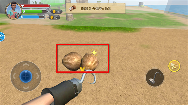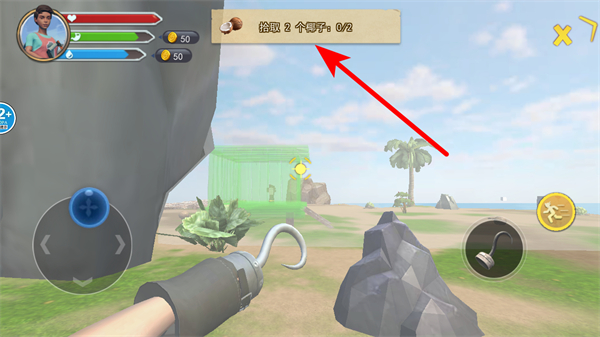 3、在任務(wù)區(qū)域,查看上方任務(wù)提示,明確需要完成的收集目標(biāo),如拾取椰子。