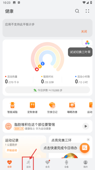 1、打開健康類APP,點擊底部運動選項,進入運動頁面。