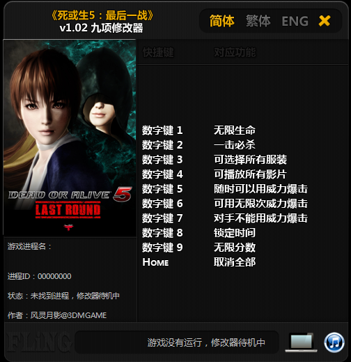 死或生5最后一戰(zhàn)修改器是針對這款游戲制作的含無限生命、無限分?jǐn)?shù)等在內(nèi)的共9項(xiàng)屬性修改的游戲輔助工具,下附使用說明,玩家依步驟操作即可完成修改,獲取極致游戲體驗(yàn),喜歡這款游戲的朋友快來下載吧!祝你游戲愉快!