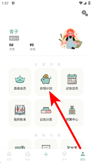 2、在個人中心頁面,點擊存錢計劃,進(jìn)入存錢計劃頁面。