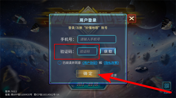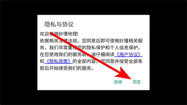 1、打開妙懂地理,在隱私與協(xié)議彈窗,點擊同意。