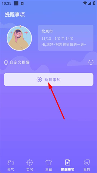 2、在提醒事項(xiàng)頁(yè)面點(diǎn)擊新建事項(xiàng),進(jìn)入添加事項(xiàng)環(huán)節(jié)。