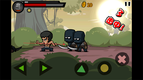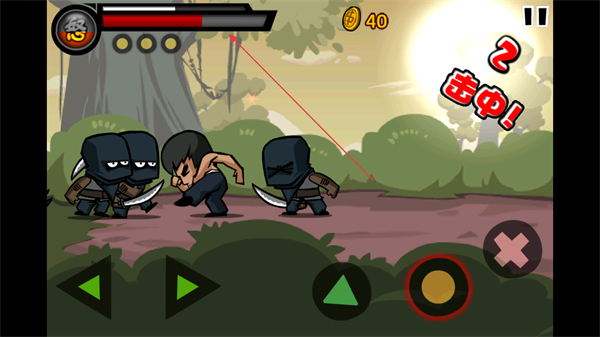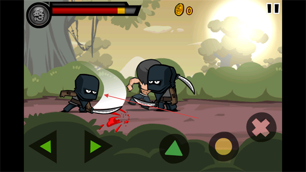 1、操控角色移動(dòng),與忍者敵人近戰(zhàn)交鋒,揮刀攻擊,積累擊殺數(shù)。